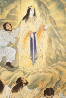 The Gods and Goddesses had, with great foresight, installed a mirror directly outside of the cave. Amaterasu, who had never seen her own beauty was dazzled. While she stood there dazed, the other Divinities grabbed the door and pulled it open. Thus the sun returned to warm the Earth. Mounted again on her heavenly throne, Amaterasu punished Susanoo by having his fingernails and toenails pulled out and by throwing him out of heaven